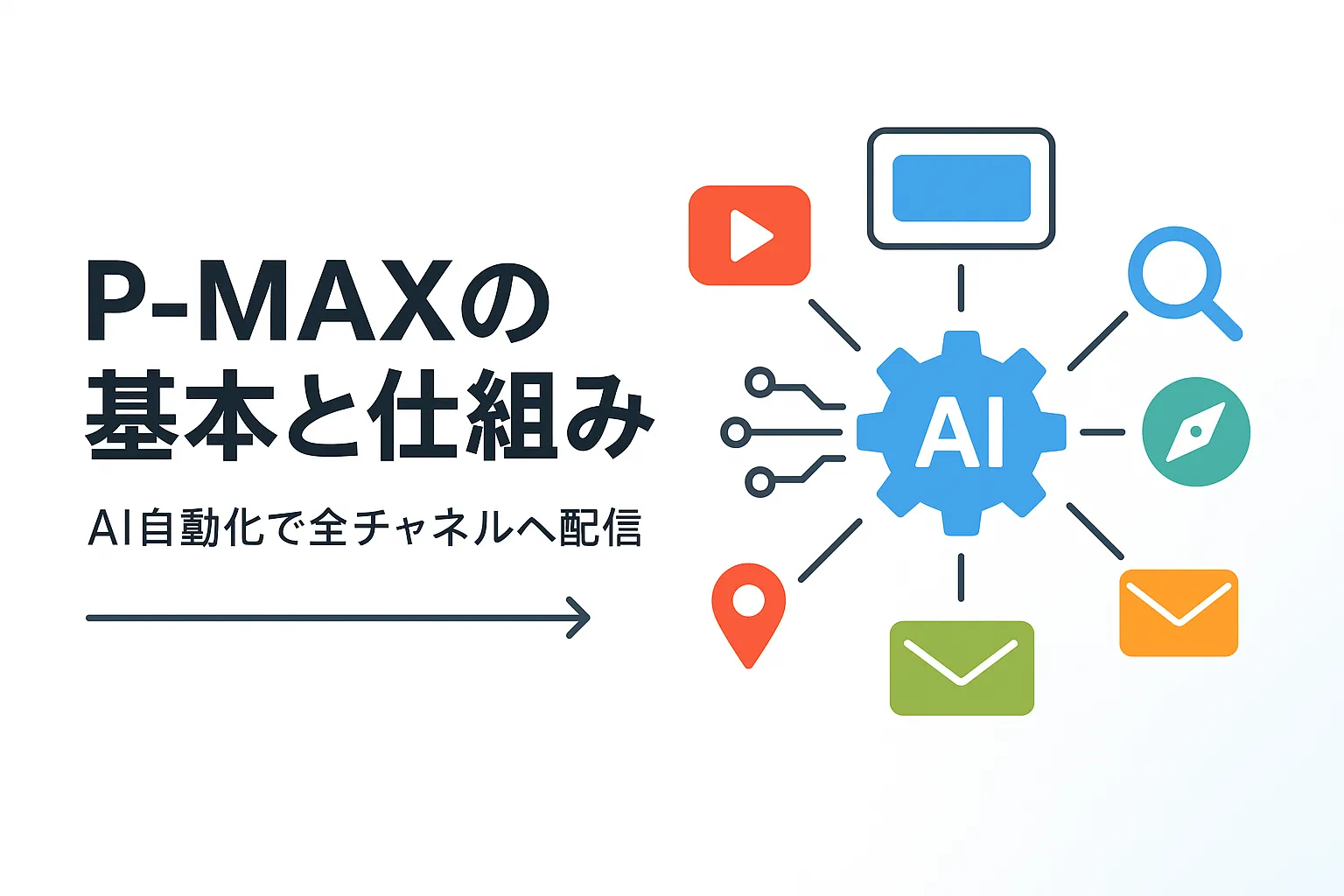 P-MAX(Performance Max:パフォーマンス最大化)キャンペーンは、1つのキャンペーンからGoogleのあらゆる広告枠へ自動で広告を配信し、成果を最大化する仕組みです。