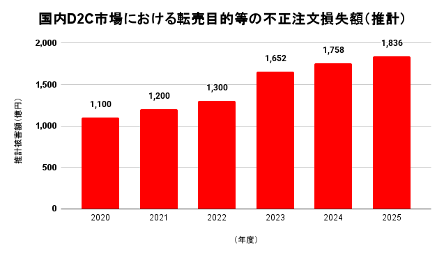 D2C市場の損失額は2025年に前年比78億円増の1,836億円へ